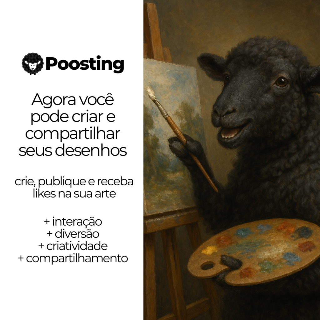 A criatividade ganhou uma nova casa! A Poosting acaba de lançar Poosting Draw, uma ferramenta inovadora feita sob medida para artistas, entusiastas do desenho e qualquer pessoa que queira soltar a imaginação e mostrar seu talento para o mundo.