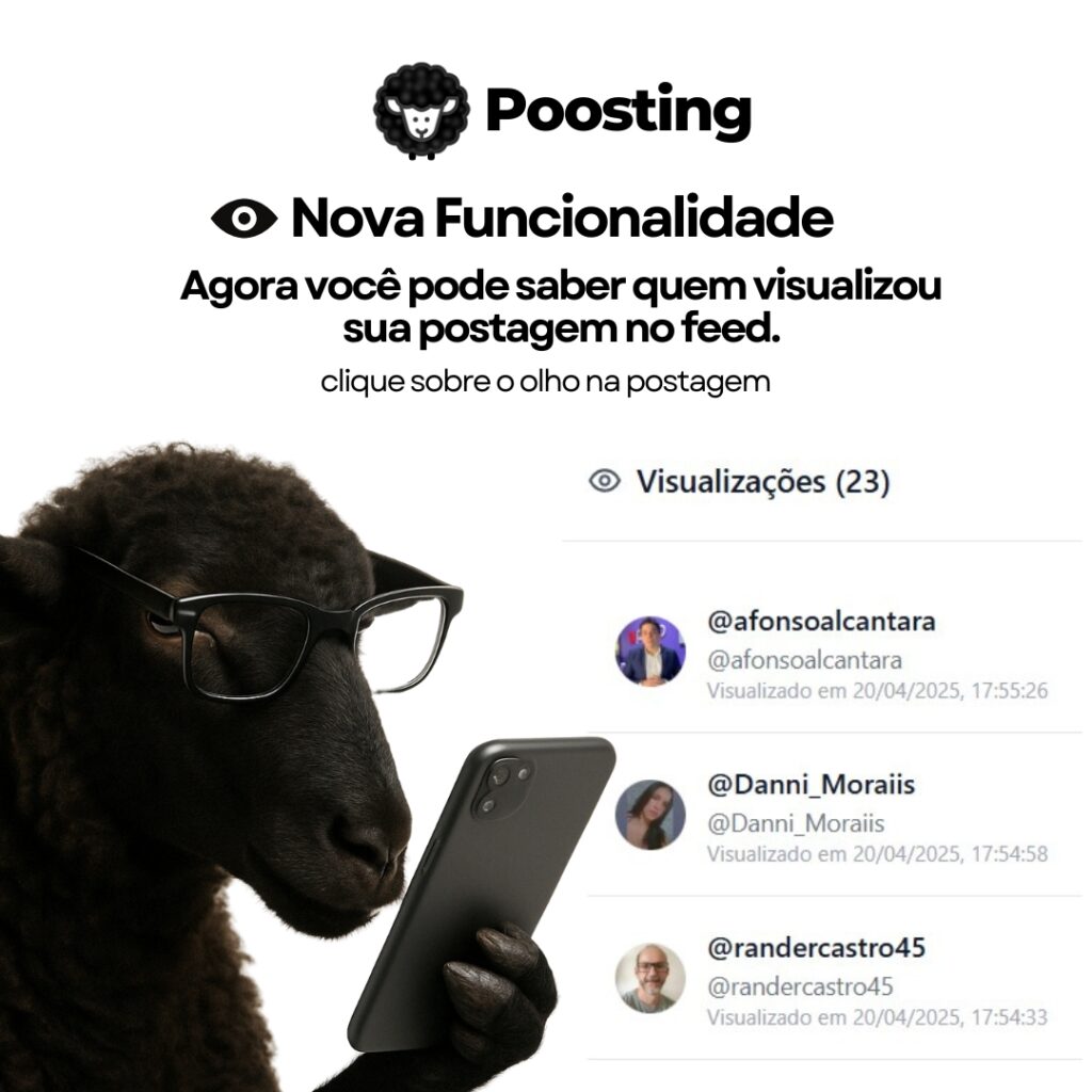 A Poosting acaba de liberar uma das funções mais pedidas pela comunidade: agora você pode saber exatamente quem visualizou suas postagens no Feed, quantas vezes, e em qual data e horário!