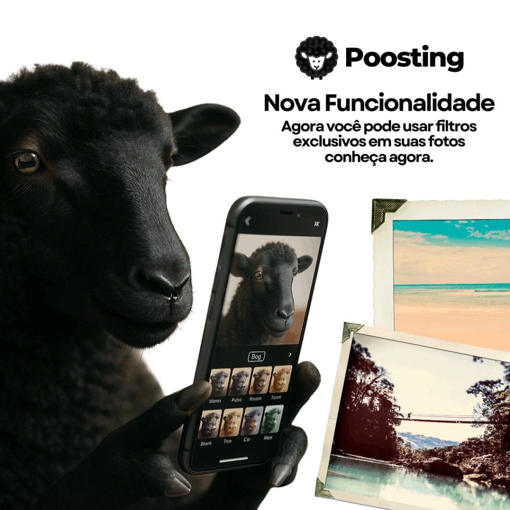 A Poosting acaba de lançar mais uma novidade incrível para seus usuários: Filtros Exclusivos para Fotos! Agora, além de compartilhar momentos especiais, você também pode dar um toque único às suas imagens antes de publicar.