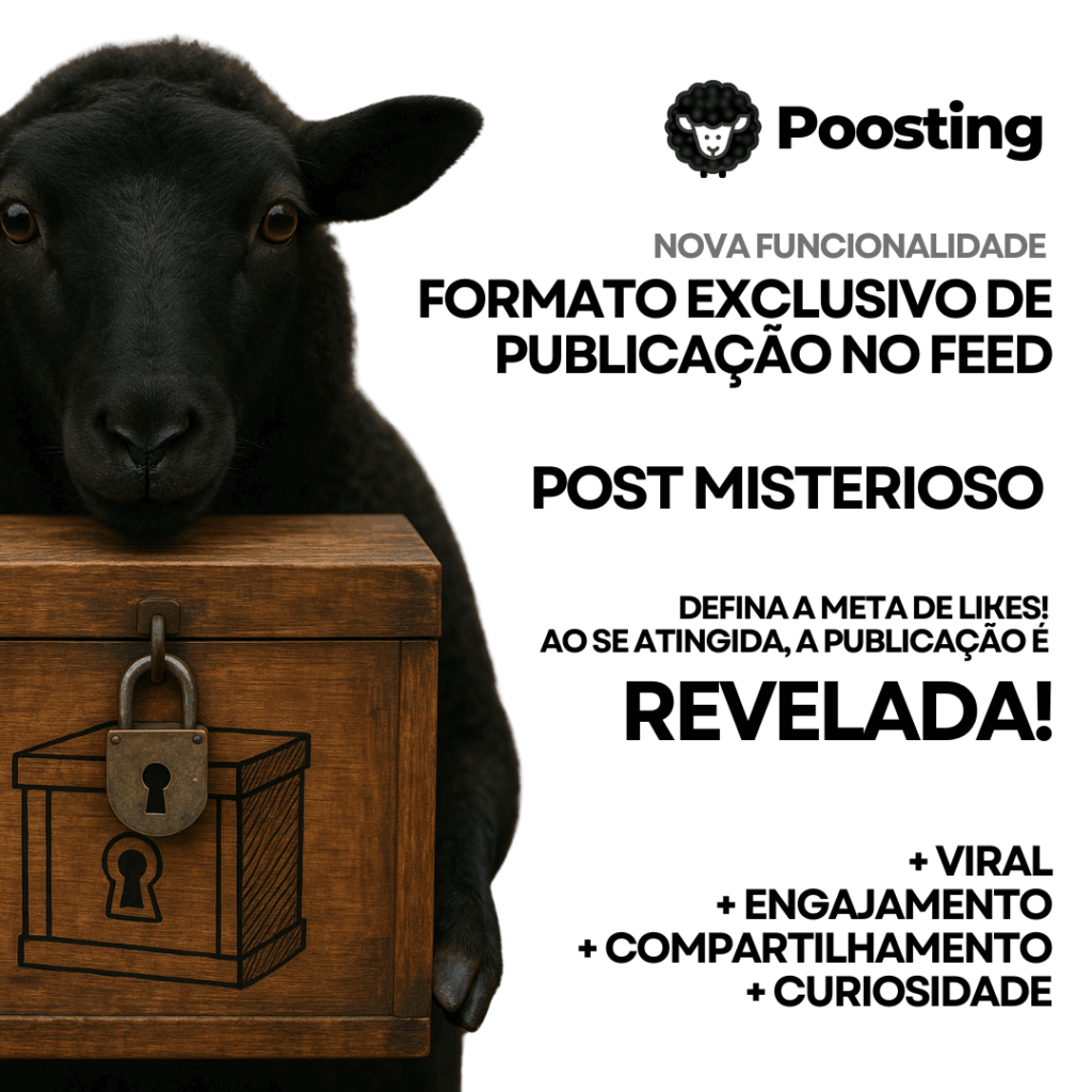 A Poosting acaba de lançar uma das funções mais criativas e interativas da rede: o Post Misterioso. Uma nova forma de publicar no feed que promete movimentar ainda mais as conexões entre os usuários! 🔥