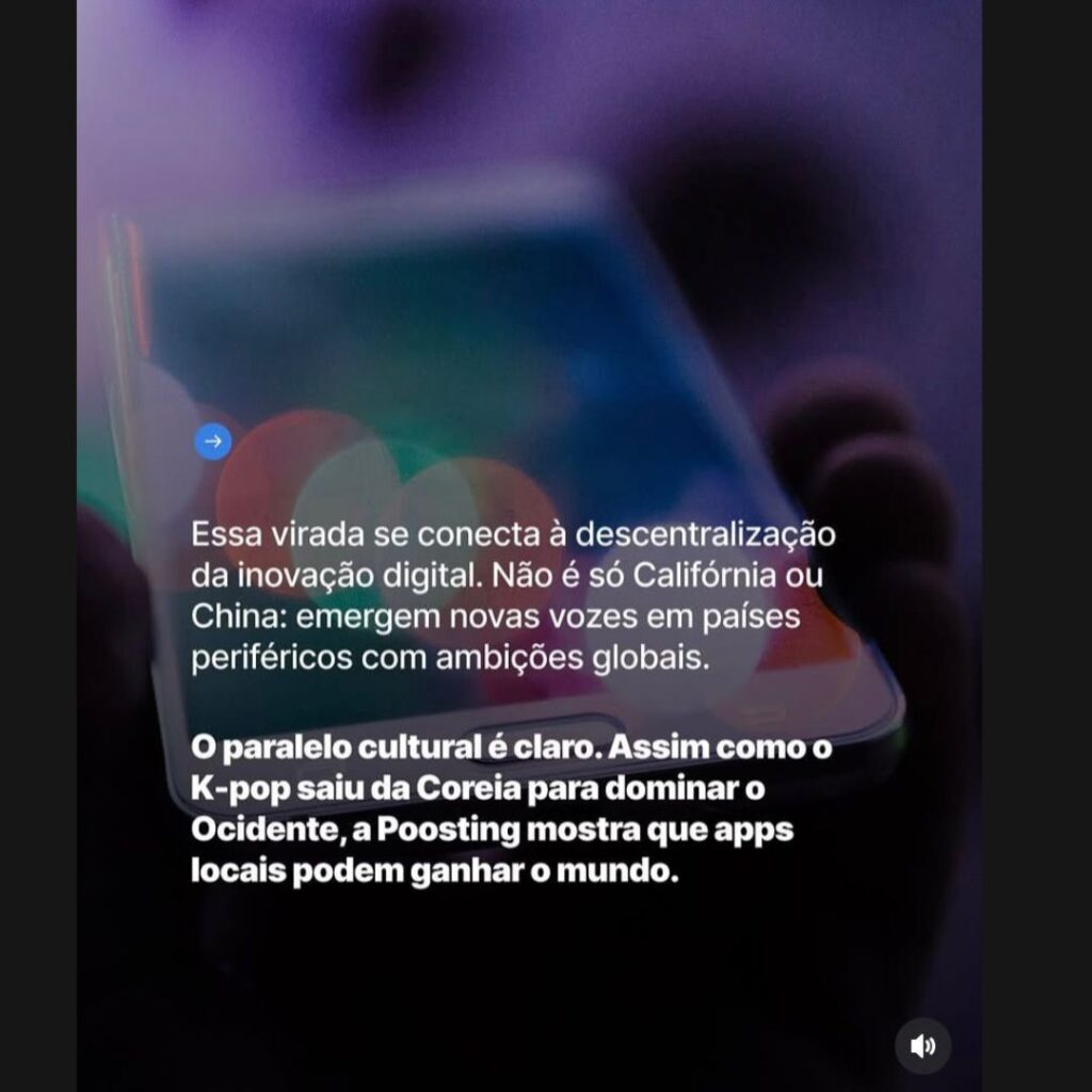 A StartSe também faz um paralelo cultural interessante: assim como o K-pop saiu da Coreia para conquistar o mundo, a Poosting mostra que apps locais podem ganhar relevância global. Essa virada faz parte de um movimento maior de descentralização da inovação digital, em que países fora do eixo Califórnia-China começam a lançar produtos com ambições globais.