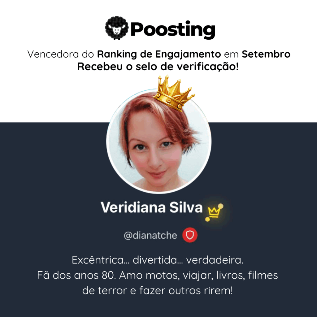 Setembro foi um mês marcado por conexões genuínas, interações divertidas e muito carisma dentro da nossa comunidade — e ninguém representou isso melhor do que Veridiana Silva, a grande vencedora do Ranking de Engajamento da Poosting! 👑