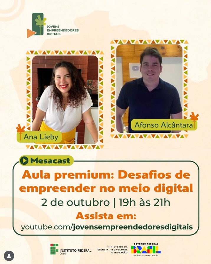 Durante duas horas, das 19h às 21h, o público acompanhou um bate-papo repleto de insights, reflexões e aprendizados. A mediação ficou por conta de Amanda Conrado, professora do Instituto Federal do Ceará (IFCE), campus Guaramiranga. Com ampla experiência em administração, educação e inovação, Amanda conduziu a conversa de forma leve e dinâmica.