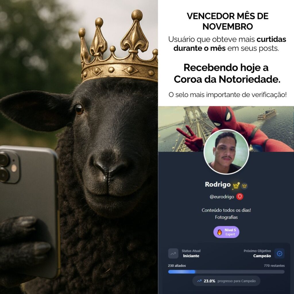Em nome de toda a equipe Poosting, deixamos aqui nosso parabéns ao Rodrigo (@eurodrigo) por conquistar a Coroa da Notoriedade do mês de novembro.